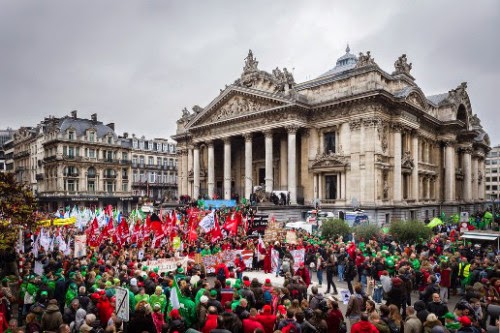 Το πρόσφορο έδαφος στο οποίο αναπτύχθηκαν οι απεργίες κατά των μέτρων λιτότητας βοήθησε επίσης στην επιτυχία της πανευρωπαϊκής διαδήλωσης που συγκλόνισε τις Βρυξέλλες, προχθές Παρασκευή. Το αίτημα που κυριάρχησε αφορούσε την μη υπογραφή της διατλαντικής συμφωνίας (TTIP) που συζητιέται από το 2013, μεταξύ ΗΠΑ κι ΕΕ, ενώ το 2015 εκτιμάται ότι θα έχουν ολοκληρωθεί οι διαπραγματεύσεις και θα μπουν οι υπογραφές. Πρωταγωνιστές στην πορεία, που συγκέντρωσε περισσότερο 1 εκ. διαδηλωτές εκ των οποίων ήταν πολλοί Γερμανοί, Ολλανδοί και Γάλλοι, ήταν οι αγρότες που με 30 τρακτέρ απέκλεισαν το Ευρωπαϊκό Κοινοβούλιο. Στη συγκέντρωση που πραγματοποίησαν δεν παρέλειψαν μάλιστα το προσφιλές τους συνήθειο να ψεκάσουν τους αστυνόμους με φρέσκο, ζεστό γάλα. Η αντίθεση τους στην συμφωνία διευκόλυνσης κι επιτάχυνσης του διατλαντικού εμπορίου επικεντρωνόταν στα γενετικά τροποποιημένα τρόφιμα, καθώς η συμφωνία που θα γίνει θα καταργεί και τα τελευταία εμπόδια που έχουν απομείνει στην ευρωπαϊκή νομοθεσία, διευκολύνοντας την είσοδο στην ευρωπαϊκή αγορά των αμερικανικών μεταλλαγμένων. Η συμφωνία παρόλα αυτά θα είναι αμοιβαία επωφελής, για τις αστικές τάξεις ΗΠΑ κι ΕΕ κι αμοιβαία ζημιογόνα για τους εργαζόμενους, καθώς ως χαρακτηριστικό γνώρισμα έχει τον αποκλεισμό των πιο απαιτητικών διαδικασιών που μπορεί να ισχύουν στο ένα μέρος, ως γραφειοκρατικών απαρχαιωμένων και ανασχετικών για τις επενδύσεις, και την υιοθέτηση των πιο φιλοεργοδοτικών κι ευέλικτων, με το επιχείρημα ότι έτσι θα αυξηθούν οι επενδύσεις και θα δημιουργηθούν νέες θέσεις εργασίας. Στην πραγματικότητα θα αποτελέσει ένα συντριπτικό πλήγμα στα εργατικά δικαιώματα, ενώ θα απογειώσει την δύναμη των μεγάλων εταιρειών που πλέον και θεσμικά, κατοχυρωμένα θα δουν την δύναμη τους να υπερισχύει έναντι των κρατών σε περιπτώσεις δικαστικών διαμαχών. Ο συγκεκριμένος μηχανισμός επίλυσης διαφορών που μεροληπτεί σκανδαλωδώς εναντίον των κρατών και υπέρ των εταιρειών (με την επωνυμία ISDS) χαρακτηρίστηκε τόσο παρωχημένος και νεοαποικιακός ώστε ακόμη και κράτη όπως η Αγγλία, η Γαλλία κι η Γερμανία δήλωσαν πως θα καταψηφίσουν την εφαρμογή της συνθήκης αν δεν βελτιωθούν, αναγνωρίζοντας την προτεραιότητα και τα κυριαρχικά δικαιώματα των κρατών.