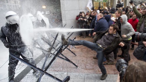 Παρότι κι άλλες φορές στο παρελθόν οι Βρυξέλλες έχουν μετατραπεί σε πεδίο μάχης, οι συνεχείς διαδηλώσεις στην έδρα της ΕΕ τους τελευταίους μήνες συντελούνται σε ένα ολότελα διαφορετικό τοπίο, σε σχέση για παράδειγμα με το Νοέμβριο του 1993, όταν και πάλι οι αγρότες του Βελγίου είχαν δείξει τα δόντια τους. Πλέον, η ΕΕ έχει πάψει να εμφανίζεται ως θεματοφύλακας των θεσμών, του κράτους πρόνοιας και της δημοκρατίας και πλέον χωρίς προσχήματα αποτελεί τον ενορχηστρωτή της κατεδάφισης των κοινωνικών δικαιωμάτων. Επομένως όχι μόνο δεν της αξίζει πλέον κανένας σεβασμός, αλλά όσο συντομότερα οι δρόμοι γύρω από το Ευρωκοινοβούλιο και την Κομισιόν γίνουν θέατρα πανευρωπαϊκού πολέμου, τόσο καλύτερα για όλους.