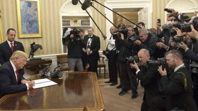 Ο Αμερικανός Πρόεδρος είχε αφήσει να εννοηθεί προεκλογικά ότι είναι αντίπαλος της «ολιγαρχίας», τραπεζών όπως η Goldman Sachs, μετά όμως την εκλογή του έδωσε στην ηγεσία αυτής της τράπεζας, στους κ.κ. Μνιούχιν και Κον (γνωστό από την εμπλοκή του στο Ελληνικό) την πρακτική οικονομική διακυβέρνηση των ΗΠΑ. Ταυτόχρονα ξεκίνησε έναν «πόλεμο κατά των φτωχών», ιδιαίτερα των ούτως ή άλλως πολύ περιορισμένων δικαιωμάτων στη περίθαλψη των Αμερικανών που είχε θεσπίσει ο Ομπάμα.