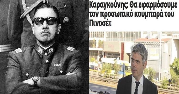 Και τώρα ήρθε και τούτος, ο Καραγκούνης, για να διαφημίσει το ασφαλιστικό του φασίστα Πινοσέτ (!) σαν το «πιο πετυχημένο παγκοσμίως» (!) και να προαναγγέλλει (γελώντας!) την εφαρμογή του από τη ΝΔ!