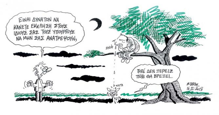 Αντιθέτως πολιτικώς ορθότατο είναι το δόγμα «ή θα τους τελειώσουμε ή θα μας τελειώσουν» (Τσίπρας), «όποιος δεν είναι μαζί μας είναι εναντίον μας» (Μπους), «θα κερδίσουμε τις εκλογές, αν στείλουμε και κανέναν στη φυλακή» (Πολάκης), ήτοι τον Πετρουλάκη, τον Παπαχρήστο, την «Εφ. Συν.» (Καμμένος) και τη… διαπλοκή – πλην «Νέων» και «Καθημερινής», διότι σε πολιτικούς συντάκτες μόνον αυτών των δύο εφημερίδων διοχέτευσαν (κατά το… διέρρευσαν) οι Συριζαίοι το μυστικό της μυστικής (ακόμα και από την «Αυγή») συνάντησης Τσίπρα – Καμμένου στη Λέσχη Αξιωματικών. (Στην Αίθουσα «Ο ωραίος Κομιτατζής του Ίλιντεν»).