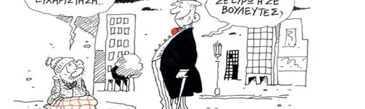 Γέρων: ο απόμαχος της εργασίας, ο σεβαστός, ο σεβάσμιος, ο βετεράνος. Οι Σπαρτιάτες ράβδιζαν όσους δεν τιμούσαν τους γέροντες και οι Αθηναίοι τους εξόριζαν. Ο καπιταλισμός τους ξεφτιλίζει και οι υπομείονες της Αριστεράς που Γονάτισε καλούν τον Άδη να τους πάρει μια ώρα αρχύτερα.