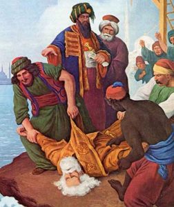 6. Ο Σουλτάνος στο τέλος θανάτωσε με οικτρό τρόπο τόσο τον Γρηγόριο Ε’ όσο και τον θρησκευτικό ηγέτη Χατζή Χαλίλ Εφέντη (Σεϊχουλισλάμης) που αρνήθηκε να εκδώσει φετφά (διαταγή) για τη σφαγή και εξόντωση των Ελλήνων, με το σκεπτικό ότι το κοράνι δεν επέτρεπε τη σφαγή αθώων.