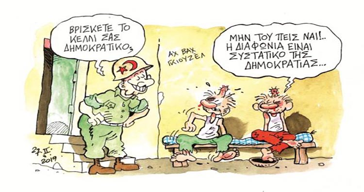 Κι όποιος δεν συμφωνεί, υπάρχουν και τα ΜΑΤ να του σπάνε το κεφάλι για να βάζει μυαλό. Κρότου – λάμψης στον εγκέφαλο -μέσα! μεταξύ μετωπιαίου λοβού και υποθαλάμου.
