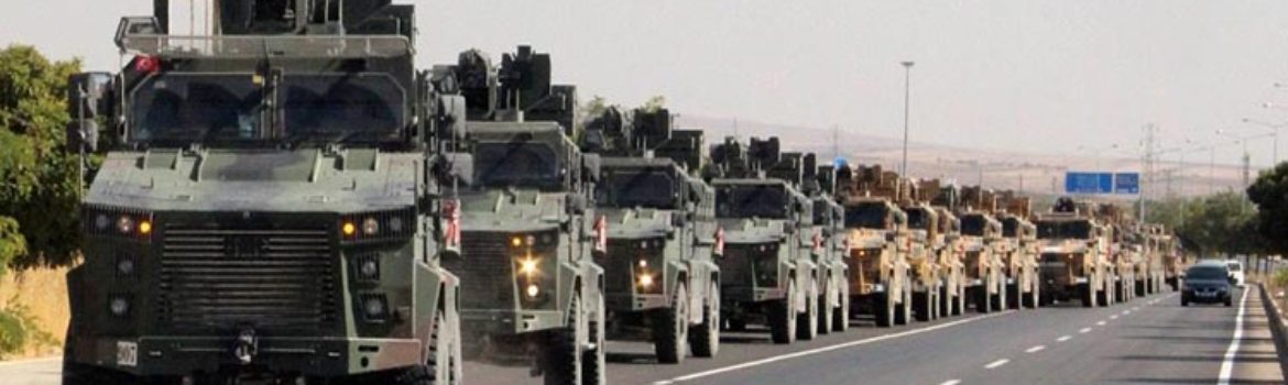 Εισβάλει σε μια χώρα, τη Συρία, αφού το έχει αναγγείλει επίσημα στον ΟΗΕ χωρίς να συναντήσει καμία αντίδραση, ονομάζει όλους τους Κούρδους τρομοκράτες, και υιοθετεί τις τζιχαντιστικές συμμορίες. Προς το παρόν, από τις 100.000 που έχουν τεθεί στην μάχη, οι 20.000 αποτελούνται από τις φιλοτουρκικές συμμορίες των τζιχαντιστών και των αντικαθεστωτικών της Συρίας.