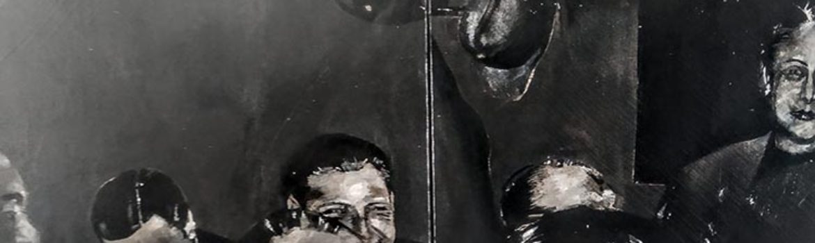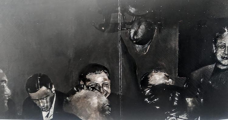 Φωτογραφία: Ζωγραφική του Κυριάκου Κατζουράκη από το σημαδιακό 1971. Η πολιτική και η κοινωνική ελίτ της χώρας σε, μαύρο, σταθερά φόντο.