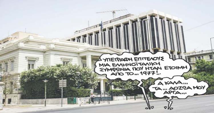 Αντιμέτωπη με αυτά τα απτά δεδομένα, οι στρατηγικά ψύχραιμοι των Αθηνών πανηγυρίζουν επειδή ρύθμισαν το θέμα της αλιείας της κόκκινης γαρίδας υπογράφοντας μια συμφωνία που ήταν ουσιαστικά έτοιμη από το 1977 με την Ιταλία.